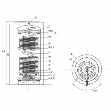 | Inlet heat carrier/lower coil S2 | S2i, mm | Rp1”/1360 | Rp1”/1410 | Rp1”/1570 | |||||