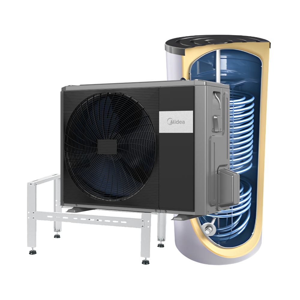 Midea Nature R290 monoblokk õhk-vesi soojuspump, komplektis kinnitusklambrid ja 200L soojaveepaak (8,0–15,5 kW)