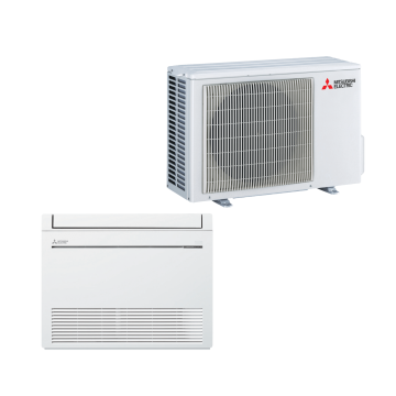 The Mitsubishi MFZ-KW seeria korrusel konsooli soojust pump on diskreetne ja kerge kuni positsiooni - see on paigaldatud kell need sama kõrgus nagu a tüüpiline radiaator (ja) saab ka olla osaliselt ehitatud sisse need seina. See disaini teeb see lihtsam kuni installida sisse tubades kus a tavaline õhk-õhk soojust pump saab olla problemaatiline, sellised nagu pööningul ja pööningul korterid.