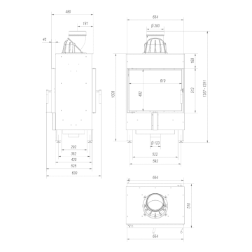 Sisseehitatud õhuküttega kamin Kratki Lucy, 12 kW, Ø200, tunnel-tüüpi põlemiskambriga