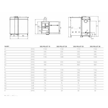| Pellet reservuaari maht | L | 150 | 220 | 230 | 230 |