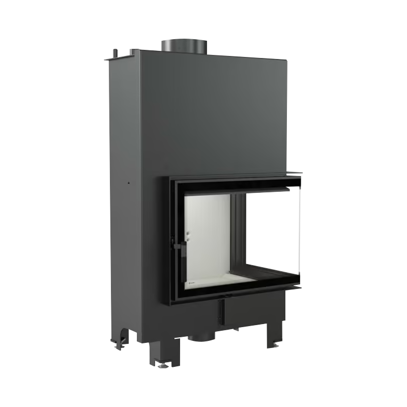 Central heating fireplace Kratki MBZ PW, 13 + 7 kW, Ø200, with right or left corner glass doors