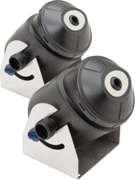 Two colourful laminar flow water jets for small pools to create a romantic and relaxing environment with a special charm. The height and colour tone of the jets change according to one of the programmes set in the system. The programmes can be switched by remote control. The programmes are set at the factory and cannot be changed. The height and distance of the parabola depends on the angle of the nozzle (max. height 0.9m, max. distance 1.8m - see graphic). 8 mm jet diameter. "Plug and switch principle - no special preparation work required. Includes: two Water Jet Lightning units, pump (1500 l/h, 17W), external control unit with remote control, transformer and power cable. Total power consumption 41W. Safe use thanks to 12V technology.