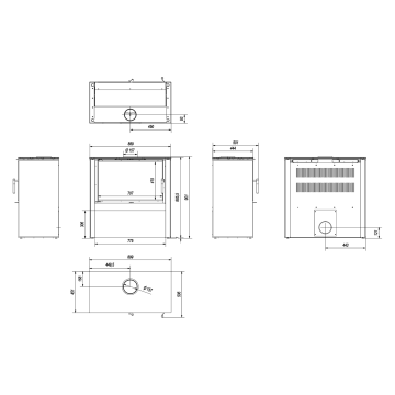 - Cleaning: ash grate with ash collection tank, air curtain system that separates the glass from the combustion chamber and keeps the glass clean