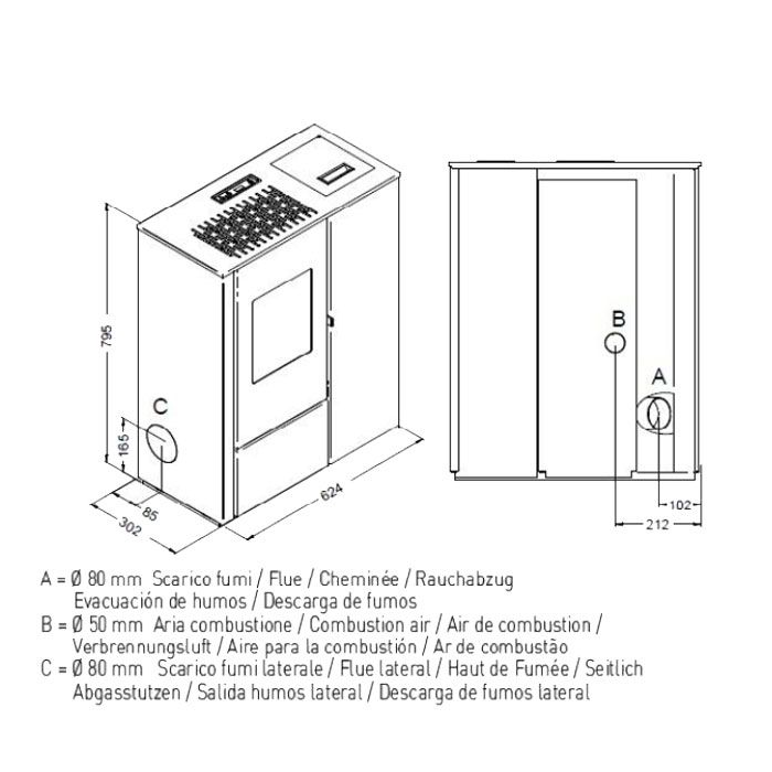 - Dimensions (WxDxH): 624x302x795mm
