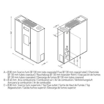 Eva Calor Manuela, 9.4 kW, is a compact pellet fireplace with a small depth (only 25 cm), which is designed for heating rooms with a volume of up to 200 m3, depending on the insulation of the room. Rear flue outlet (it is possible to modify the fireplace for flue gas outlet through the side), pellet feed from above.