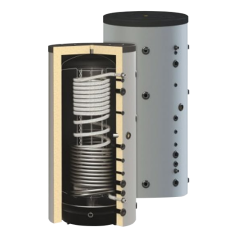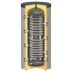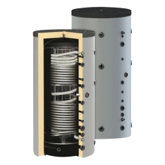 Bieži multifunkcionālajās tvertnēs kopā ar caurplūdes siltummaini vai integrēto tvertni tiek integrēti arī apkures siltummaiņi, kuri ļauj karstā ūdens un apkures sagatavošanu veikt ar papildus apkures avotu, to skaitā arī saules kolektoru vai siltumsūkņu, palīdzību.