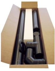 Dūmvadu komplekts Centrometal granulu kamīniem un katliem, ietverot nepieciešamos dūmvadu pieslēguma elementus.