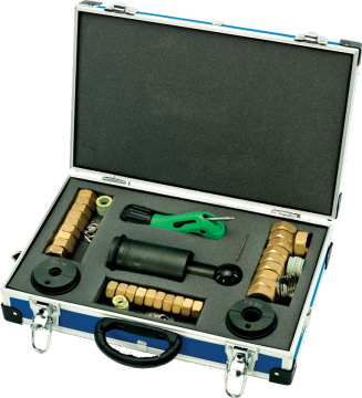 - Gebo instrumentu komplektu ar āmuru, ieliktņiem, cauruļu griezēju, uzgriežņiem un blīvēm