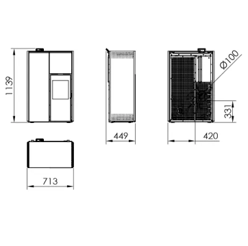 - Dūmgāzu izvada diametrs: 100mm.