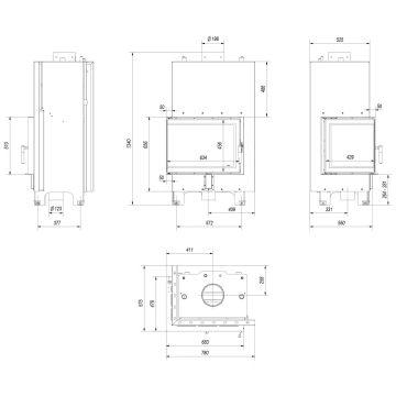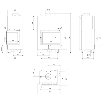 Iebūvējams centrālapkures kamīns Kratki MBZ PW, 13 kW, Ø200, ar labā vai kreisā stūra stikla durvīm