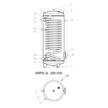 Karstā ūdens boileris SWPN-2L ar dubulto siltummaini ir īpaši paredzēts darbībai ar siltumsūkņiem - pateicoties lielākas platības siltummainim, tvertni iespējams stabili apsildīt arī ar zemas temperatūras apkures avotu.