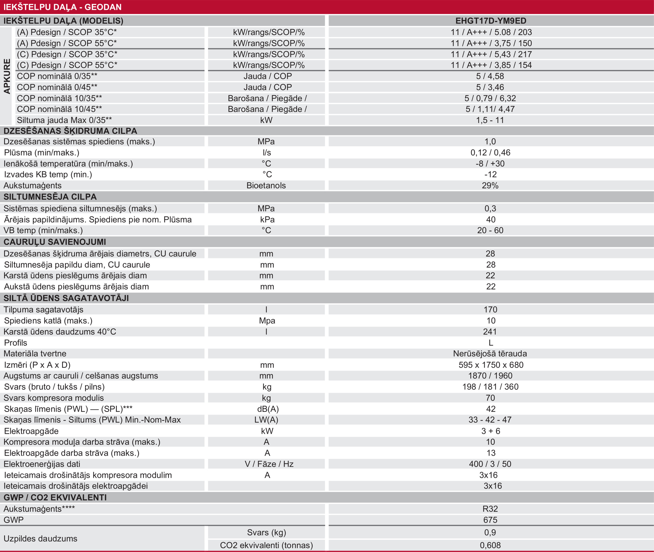 - Integrēta 170L karstā ūdens sagatavošanas tvertne;