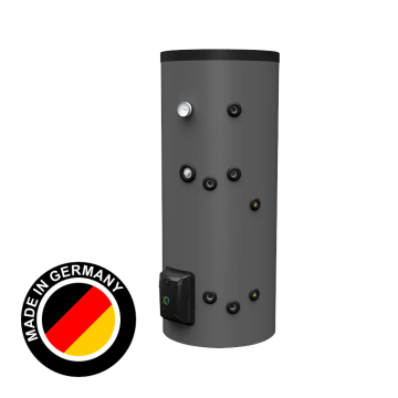 Gadījumos, ja saules enerģija nav pieejama, boilerī iebūvētais siltummainis ļauj pieslēgt augstas temperatūras apkures katlu (piemēram gāzes vai granulu apkures katlu).