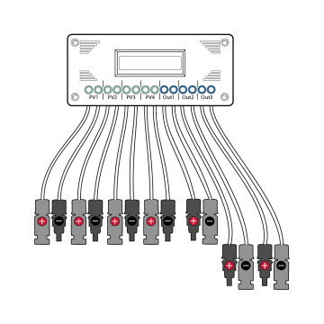 Pie tā ir iespējams pieslēgt saules paneļus ar kopējo jaudu līdz 2000Wp, kas tālāk tiek padota mikro PV invertoram ar maksimālo jaudu 800W.