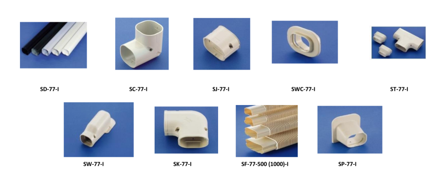PVC kanāli un to fasondaļas INABA, ar kuru palīdzību tiek noslēptas freona caurules, kas savieno āra un iekšas gaiss-gaiss siltumsūkņu un gaisa kondicionieru blokus.