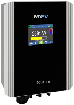 My-PV SOL-THOR ir lineāri regulējams (jauda no 0 līdz 3.6 kW) saules enerģijas pārvaldnieks, ar kura palīdzību iespējama tieša saules enerģijas ražošana un tā saražotās līdzstrāvas izmantošana siltuma ieguvei ar minimāliem zaudējumiem.