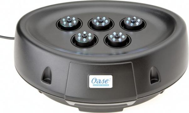 Kompakta un dinamiska - peldoša strūklaka ar piecām strūklām un neitrāli baltu LED apgaismojumu. "Pieslēdz un ieslēdz" princips - nav nepieciešami īpaši sagatavšanas darbi. Strūklu diametrs 4mm. Strūklaku augstums maināms robežās līdz 70cm atbilstoši sistēmā iestatītai programmai. Programma iestatīta rūpnīcā un nav maināma. Komplektā ietilpst 5 sūkņi, sprauslas ar apgaismojumu, kontroles kārba ar pulti, transformators un elektrības kabeļi. Pateicoties 12V tehnoloģijai, pilnīgi drošs ekspluatācijai ūdenī arī pelddīķos. Ļoti zems enerģijas patēriņš, iekārtas kopējā jauda tikai 26W. Šļakstu savākšanai iesakām uzstādīt baseinos ar vismaz 1.5m diametru.