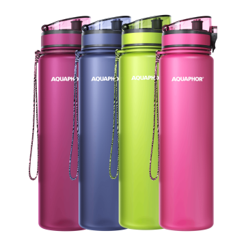 Viegls un pārnēsājams filtrs-pudele AQUAPHOR City (1000 ml) ar nomaināmām filtra kasetēm ir paredzēts auksta krāna ūdens papildus attīrīšanai. Filtra-pudeles modulis aizvāc hloru, smagos metālus, alergēnus, uzlabo ūdens garšu un smaržu.