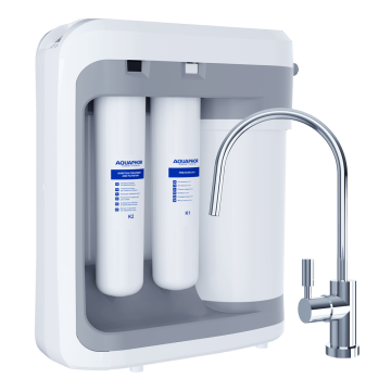 Умная и компактная система обратного осмоса с двойной мембраной, встроенным насосом и запасом чистой воды 5 литров.
