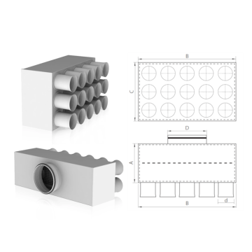 Горизонтальный распределитель Komfovent LOK-H с 15 соединениями, предназначен для передачи воздуха от рекуператора к эластичным трубам D75.