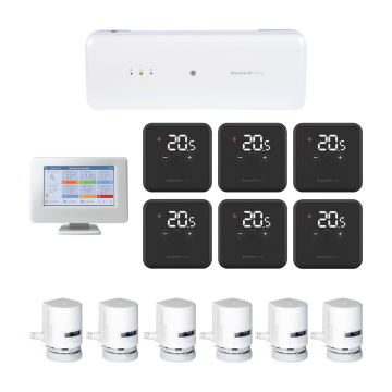 Комплект управления теплым полом Honeywell для четырех или шести отопительных контуров, состоящий из: