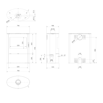 - Диаметр дымохода: 150 мм